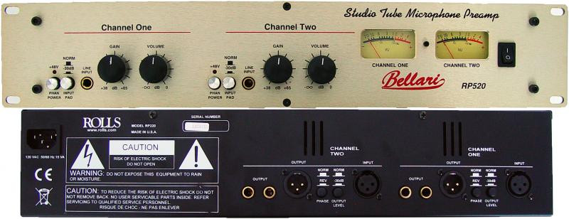 The RP520 from Rolls is a Bellari branded dual channel tube based microphone preamp that provides clear sonic quality and performance for the working musician, studio operator or anyone who needs a preamp with the warm, smooth, analog sound.
