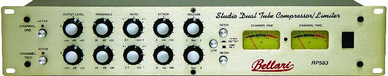 The RP583 is a clean, delightfully warm sounding compressor/limiter designed for a variety of uses. It can lightly compress a vocal track, or an overall program mix, or it can act as a ceiling for the audio allowing only a designated level of signal pass. All this is accomplished via optical isolated gain reduction and tube circuits to maintain a pristine fullbodied sound. The RP583 has all the necessary features like analog metering, variable threshold, ratio, attack and release times, and a stereo link switch which combines the channels and makes Channel Two the master.