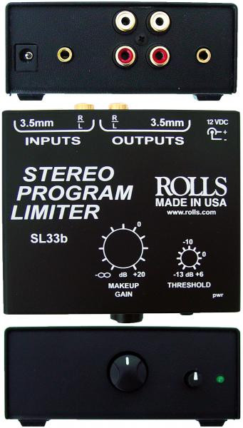 The new SL33 Stereo Program Limiter provides smooth dynamics processing for professional and consumer audio equipment. It features 1/8" stereo and RCA inputs and outputs for easy connection to any audio situation. Since there is no audio level standard for consumer audio, the SL33 keeps the levels maintained for a more comfortable listening environment. At the heart of the SL33 is a powerful compressor/limiter integrated circuit which provides automatic program limiting for unobtrusive and natural level control. A Threshold control has been provided to set the level at which the process engages, and a Makeup Gain control offers output leveling.