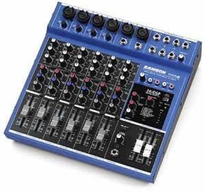 The Samson MDR 8 is an eight channel professional stereo mixer with built-in 24-bit DSP. It can handle up to either eight line ins, four mics and two stereo line ins or six mics all with high quality mic pre amps.