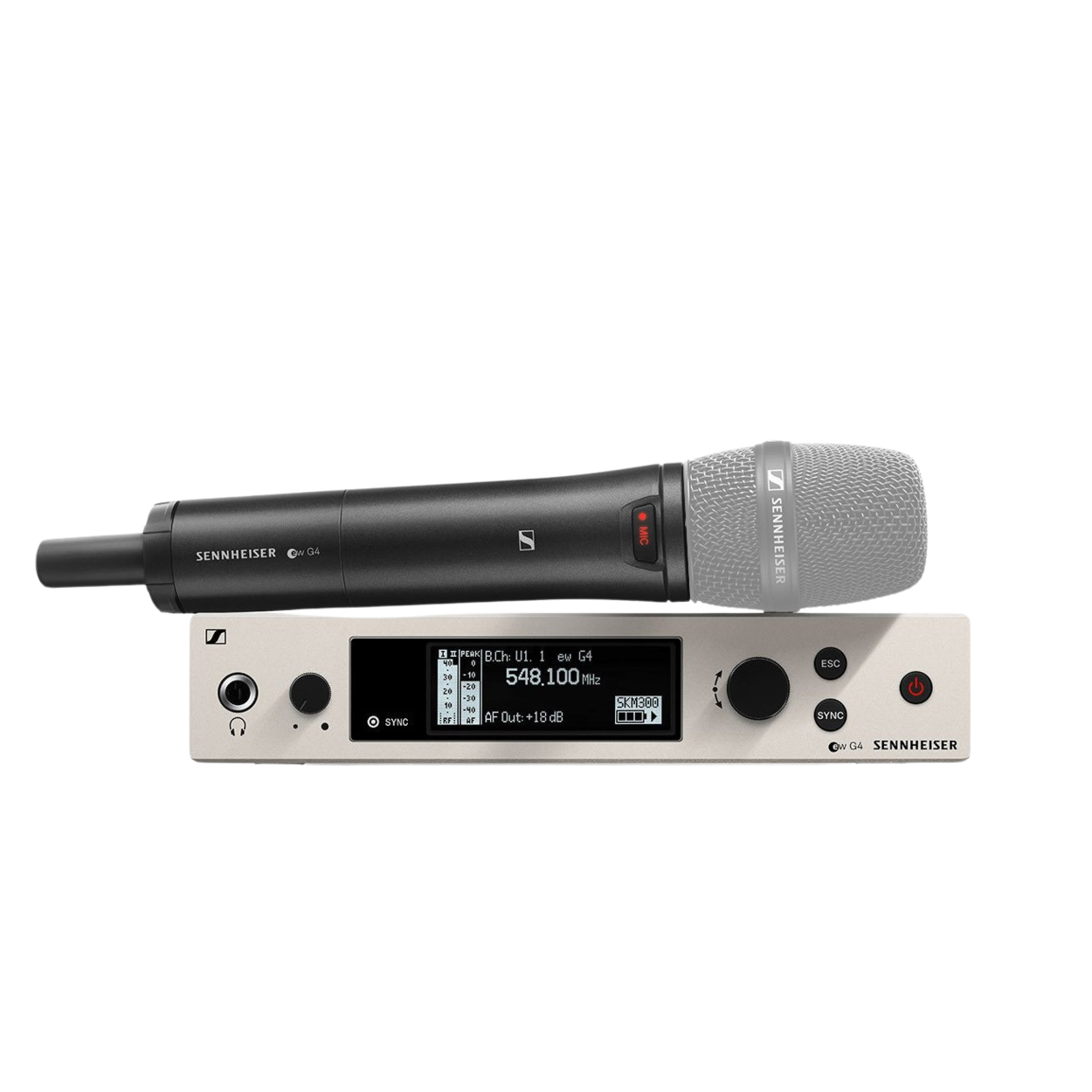 Wireless handheld base set. Includes (1) SKM 300 G4-S handheld microphone with mute switch (microphone capsule sold separately) (1) EM 300-500 G4 rackmount receiver, (1) GA3 rack kit, and (1) mic clip, frequency range:AW+ (470 - 558 MHz).