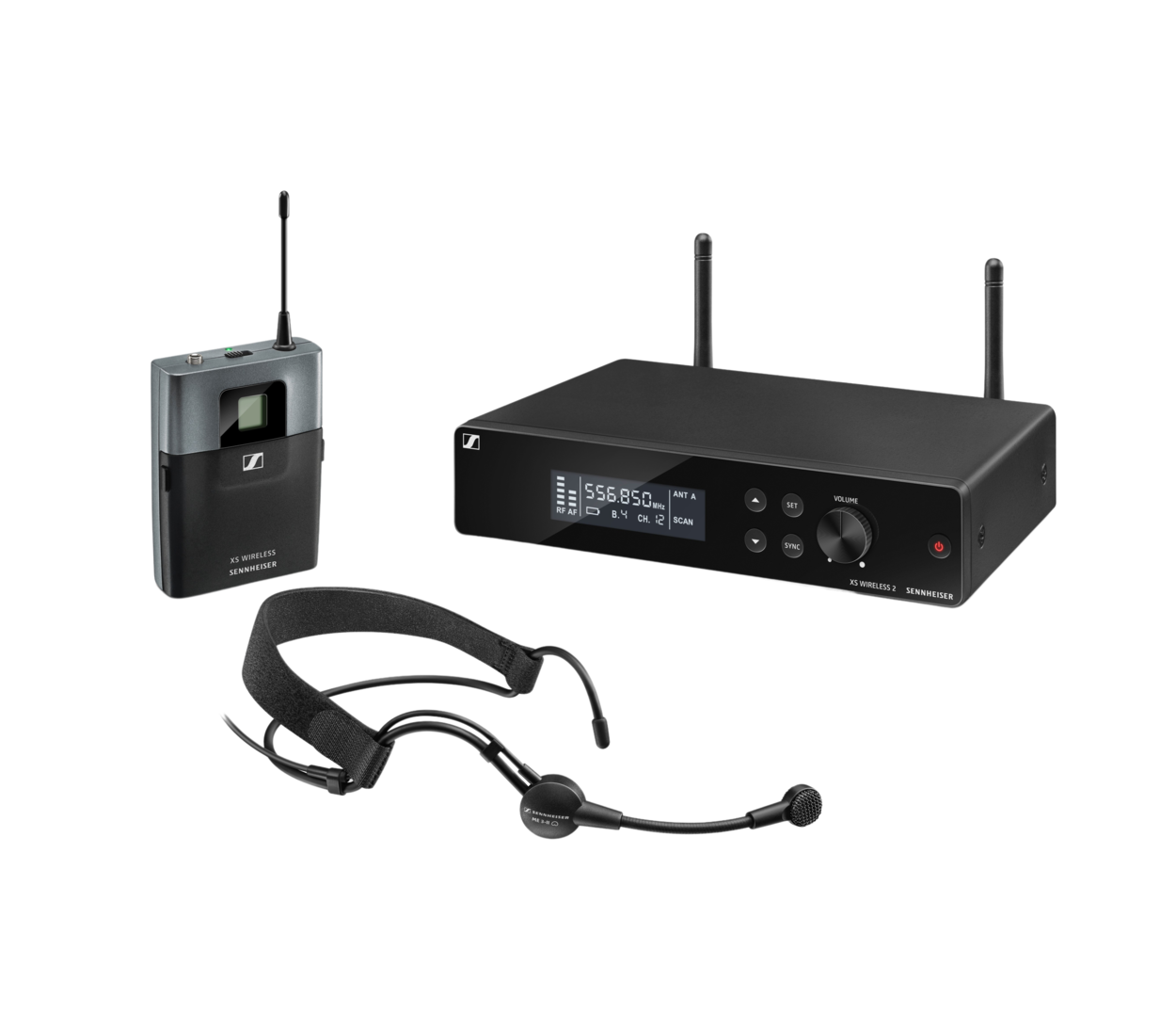 Wireless headmic set. Includes (1) EM XSW 2, (1) SK XSW, (1) ME 3-II lavalier headmic (cardioid, condenser) and (1) NT 12-5 CW, frequency range: A (548 - 572 MHz).