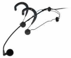 The microphone features a durable, low-profile wire frame headband which is fully adjustable for stability and comfort. A plastic carrying case protects the microphone and its accessories.
