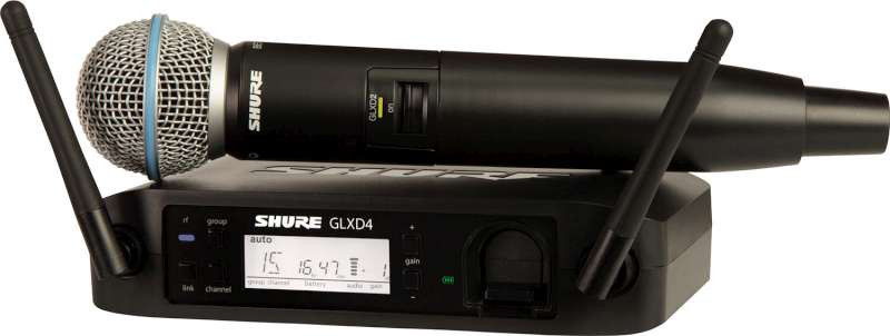 The GLXD24/BETA58A Handheld Wireless System is part of the Handheld wireless systems family. Revolutionary Shure GLX-D Digital Wireless Systems combine leading-edge LINKFREQ Automatic Frequency Management technology with best-in-class intelligent lithium-ion battery rechargeability to define the new standard for seamless operation and digital audio clarity. Featuring an integrated BETA 58A cartridge, the GLXD2/BETA58 transmits wireless audio with digital clarity and rock-solid reliability.