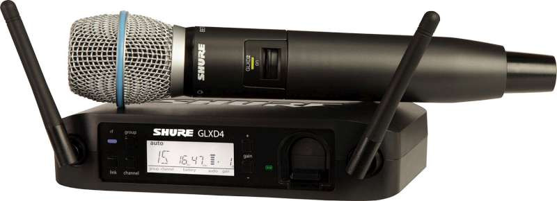 The GLXD24/BETA87A Handheld Wireless System is part of the Handheld wireless systems family. Revolutionary Shure GLX-D Digital Wireless Systems combine leading-edge LINKFREQ Automatic Frequency Management technology with best-in-class intelligent lithium-ion battery rechargeability to define the new standard for seamless operation and digital audio clarity. Featuring an integrated BETA87A cartridge, the GLXD2/BETA87A transmits wireless audio with digital clarity and rock-solid reliability.
