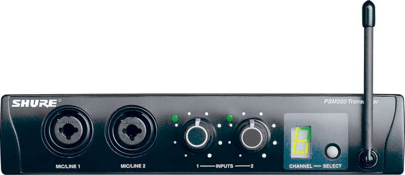 The P2T TransMixer is breakthrough design for personal monitoring. It allows the user to connect two line-level or miclevel inputs directly into the transmitter. The two signals can then be mixed independently. You can connect microphones or instruments directly to the inputs or use line outputs from a mixing console. In short, no matter what the output device, you can probably plug it into the TransMixer. For use with PSM 200 monitors.