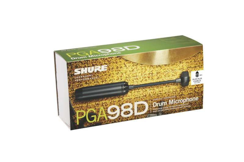 The PGA98D is a professional quality drum microphone with an updated industrial design that features a black metallic finish and grille offering an unobtrusive visual presence. Legendary Shure quality construction ensures exceptional performance in rigorous environments. The PGA98D is optimized for drum and percussion performance and recording. Includes 15ft. XLR to XLR cable.