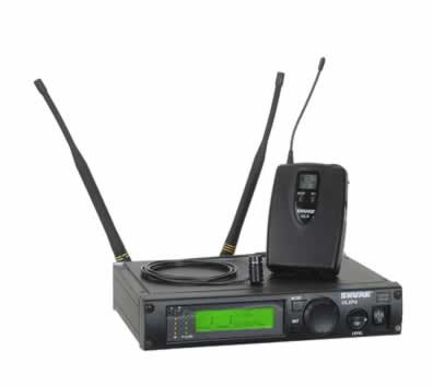 ULX Wireless Professional Lavalier System with ULXP4 Diversity Receiver, ULX1 Bodypack Transmitter, and WL184 Lavalier Mic.