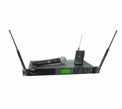 UHF-R Wireless Single Channel Combo System with UR4S Single Channel Receiver, UR1 Bodypack Transmitter and UR2/Beta58A Handheld Transmitter.