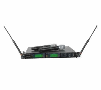 UHF-R Dual Handheld Wireless System with UR4D Dual Channel Receiver and Two UR2/SM86 Handheld Transmitters.