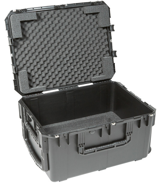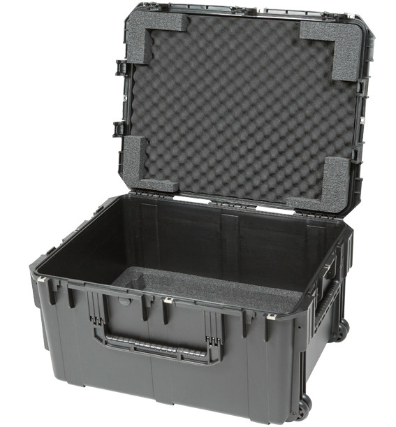 The 3i-2922-16B2 Bose B2 Subwoofer Case also features three protected hinges with stainless steel pins to provide lid stability, SKB's trigger release latch system (retrofittable with TSA recognized and accepted locks), an oversized double grip carrying handle to balance a heavy load, comfortable oversized snap-down rubber over-molded cushion grip handles on each end for two-person carry, and wide-set double wheels for a smooth ride and easy transport.
