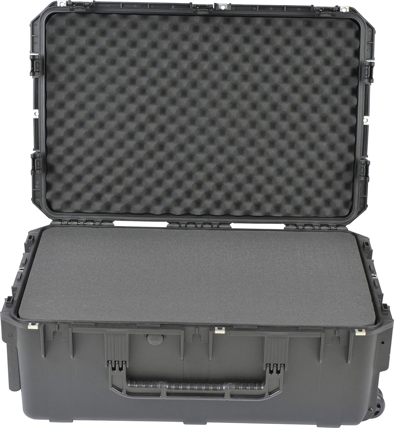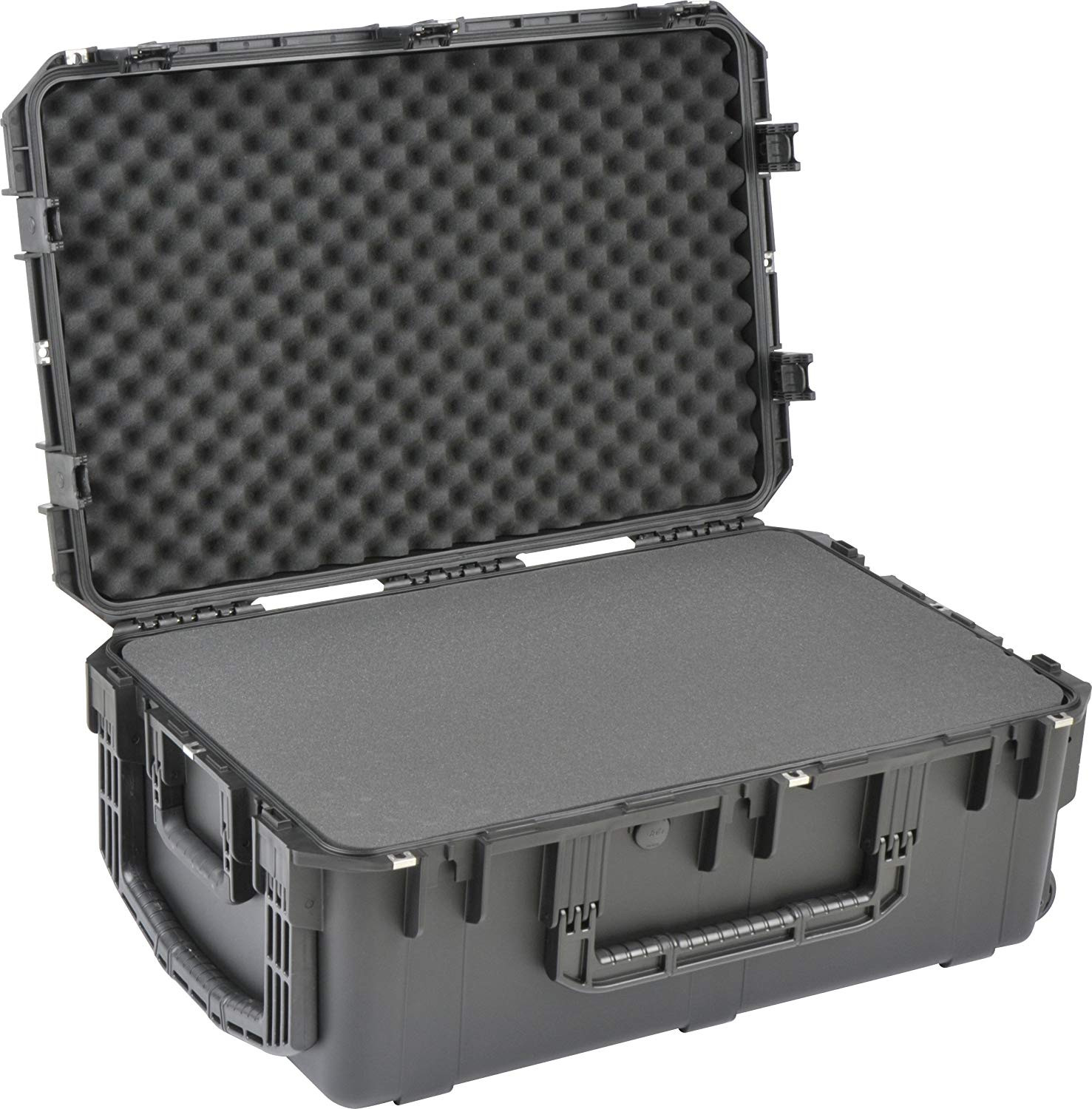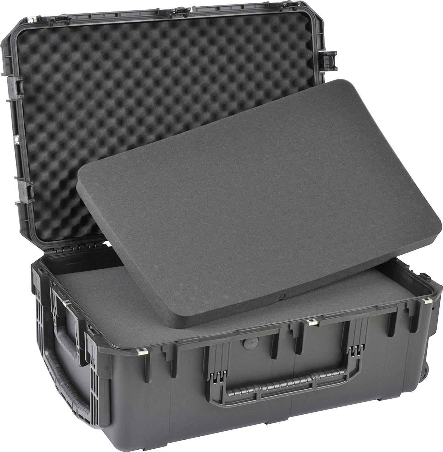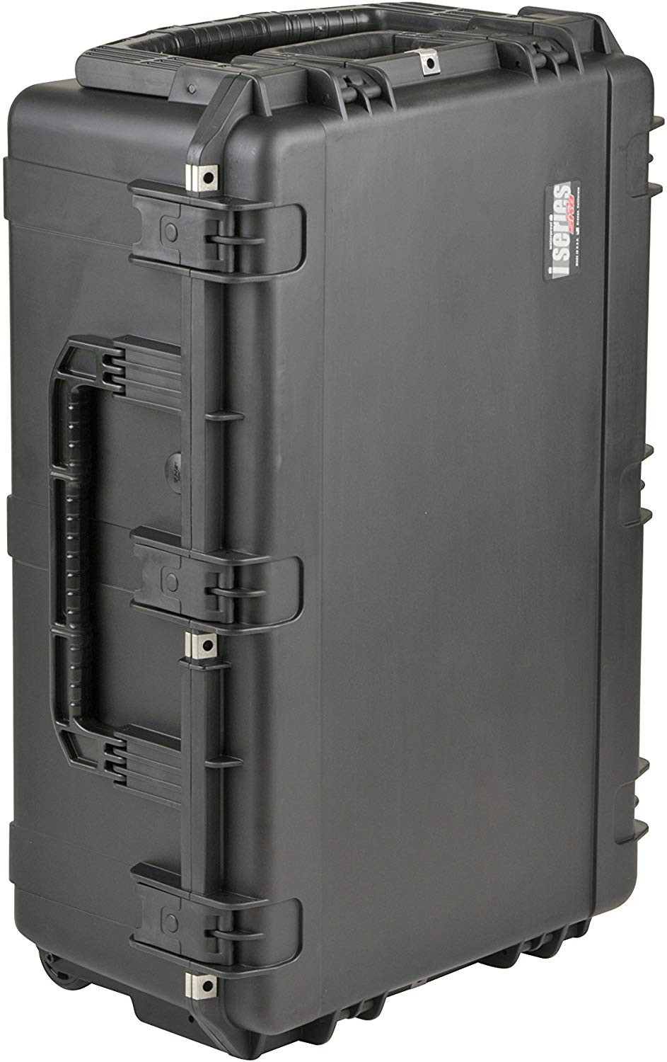 The 3I-3019-12BC Pro Audio Utility Case with cubed foam also features three protected hinges with stainless steel pins to provide lid stability, SKB's "trigger release" latch system can be retrofitted with TSA recognized and accepted locks, an oversized double grip carrying handle to balance a heavy load, and comfortable Oversized snap-down rubber over-molded cushion grip handles on each end for a two person carry or transport. The heavy-duty oversized handle and wide set double wheels offer the perfect solution to comfortable and secure protection of pro audio equipment, camera / video gear, lenses or technical equipment.