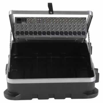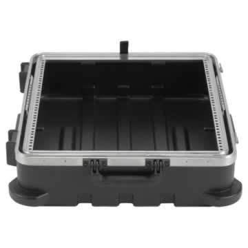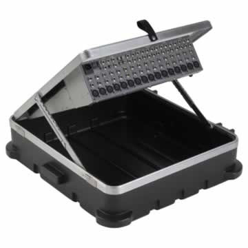 The famous SKB pop-up mixer case for 12 unit rackmount mixers. New improved ratchet tilt-up system, unique angle-set feature lets you control the tilt of the board.