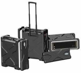 The SKB Roll-X series cases offer a 17.5" depth and will accommodate 19" rack gear. Made of polyethylene rotationally molded plastic with 2.5" wheels and industrial retractable pull handle. The Roll X racks interlock and stack with each other.