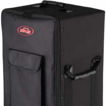 Not just a soft bag, but a soft case to transport and protect your powered mixer. A rigid plastic core that is covered by a rugged 600 Denier exterior for protection to the knobs and delicate controls. An indestructible injection molded pull out handle and dual wheels for easy transport.