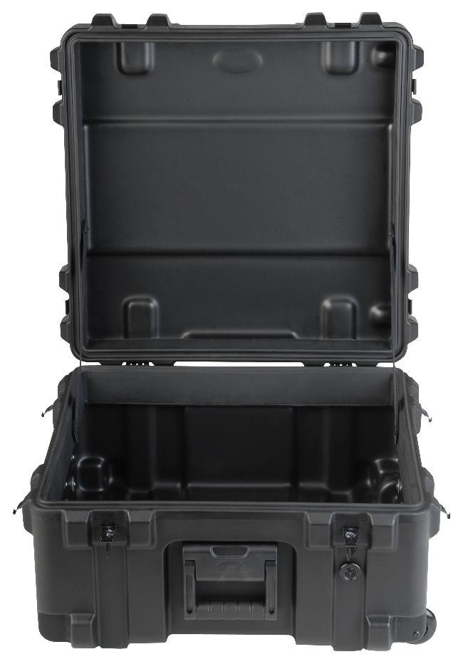 These Mil-Standard cases were designed to meet the most demanding military specifications. They are roto-molded for strength and durability, airtight and water proof with solid stainless steel latches and hinges that will withstand the most demanding shipping conditions.The 3R Mil-Std. Cases are molded of (LLDPE) polyethylene impact resistant / UV stabilized material and meet or exceed MIL-STD 810 and MIL-C-4150J specifications.The shipping cases are all available with an empty interior while some models are available with: cubed foam, layered foam, padded dividers, and a pull handle with wheels. Most models without a built-in pull handle or tow handle accommodate a field installable caster kit which is sold separately.
