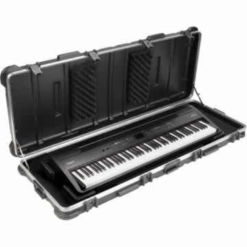 These SKB Keyboard cases have been re-designed to accommodate new TSA accepted and recognized locking latches. The TSA locking latch allows the traveler to securely lock their case and still allows for necessary security inspections and re-locking of the case when traveling. The patented corner cleat design holds the keyboard in place on an indestructible hook and loop fastener surface. The foam in the top of the lid adds additional support to the keyboard while in transit. Exterior bumpers protect the valance and hardware from impact damage.