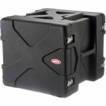 The Ultimate Strength Series is the best in American technology. With its roto molded tough shell, front and rear lids, recessed heavy-duty twist latches, molded in handles, shock absorbing rubber feet and the recognizable patented deep Roto-X pattern for solid stackability, these cases provide maximum protection. The unique molded-in unbendable valance and steel threaded rails make the Ultimate Strength Series Roto-Racks the new professional standard in the industry.