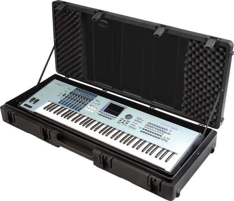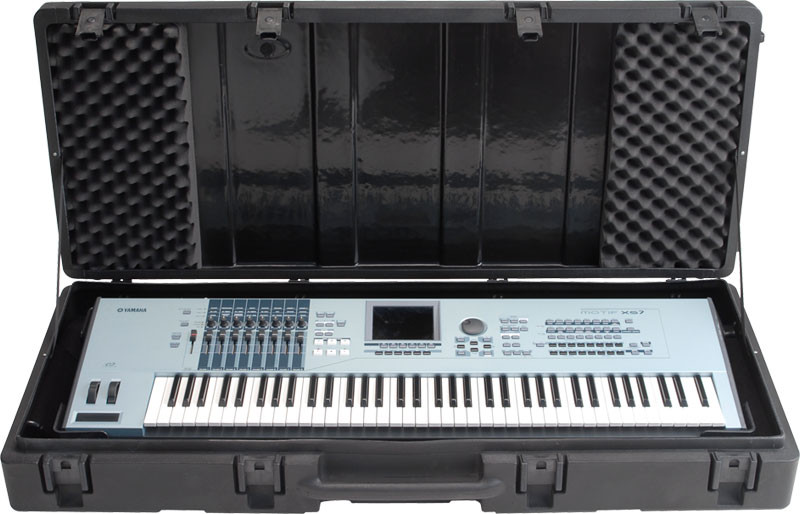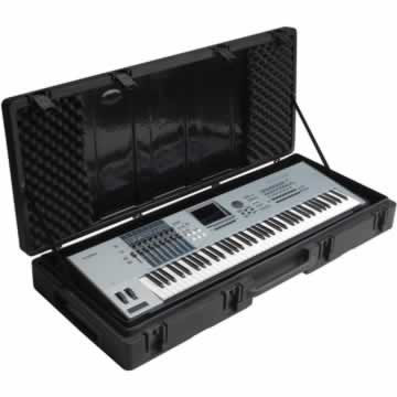 SKB Roto Molded Keyboard Cases feature a molded-in unbreakable carrying handle, end handle, and an integrated valance design which incorporates a new patent-pending trigger release latching system.