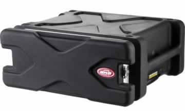 Features * Rear access panel * Two in-line skate wheels * Pull handle * Rotomolded for strength * Interlocking X pattern for solid stackability * Recessed latches * Molded-in handle * Shock absorbing feet * Hardware is provided for secure mounting of equipment