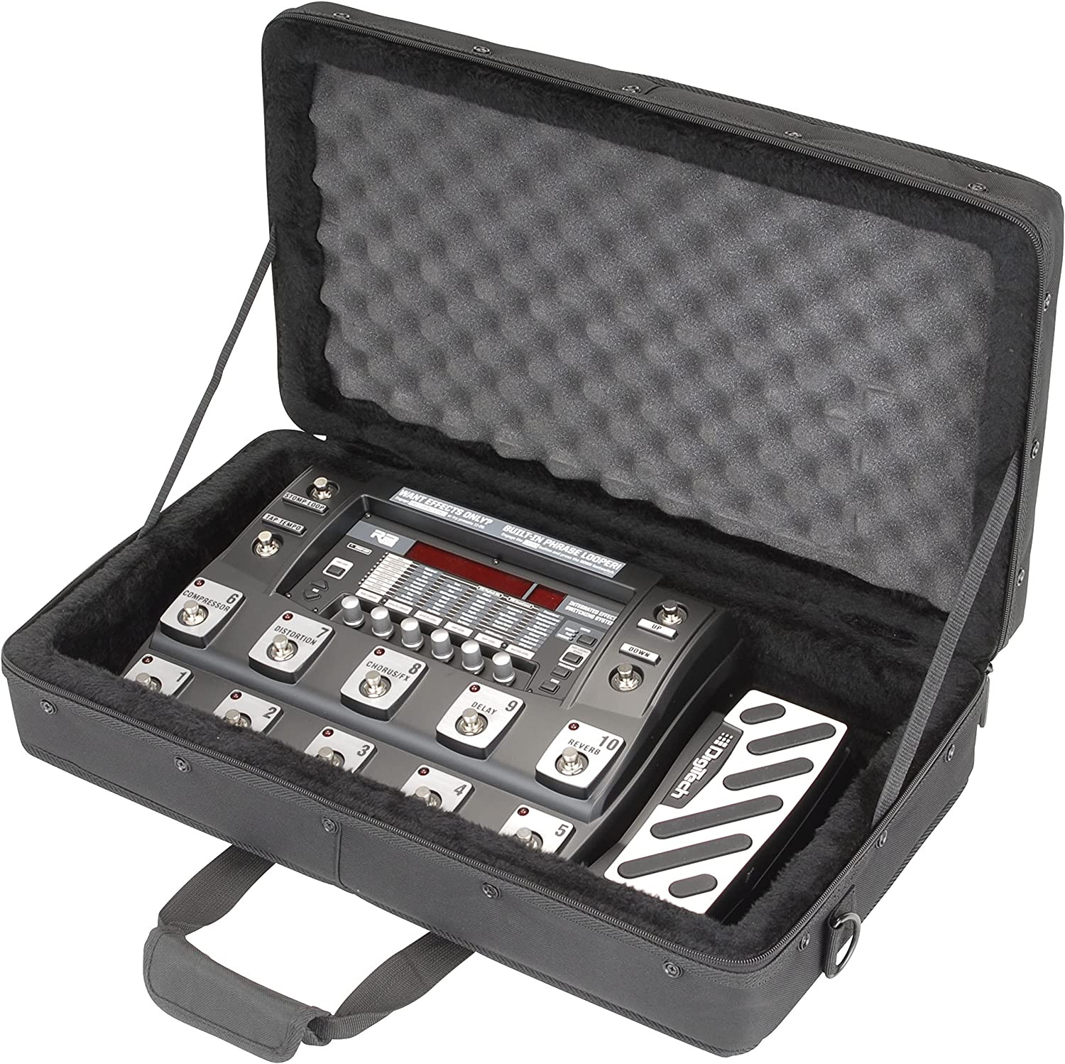 The SKB-SC2111 Controller Soft Case is designed to fit all-in-one effects floor boards (BOSS GT-10, Digitech RP1000, Line6 X3 Live, Vox Tonelab LE and many more) as well as MIDI foot controllers (Roland FC300, etc.)