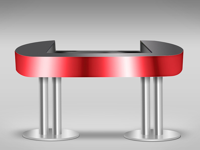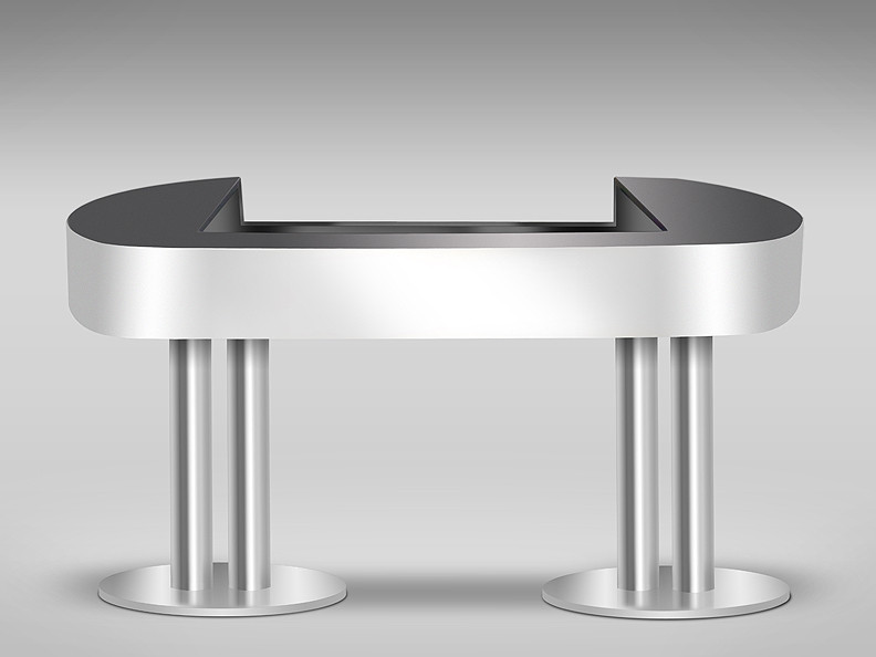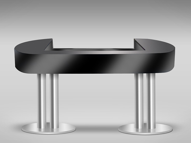 Set yourself apart with this custom, high-end DJ booth. Shipped flat packed and easily assembled, so it can be used for a mobile DJ booth if necessary. All wires are concealed within the legs. **Special Order Item**
