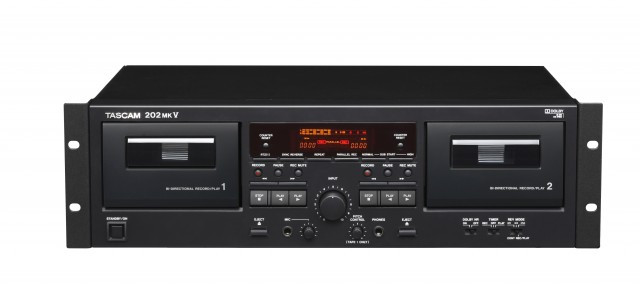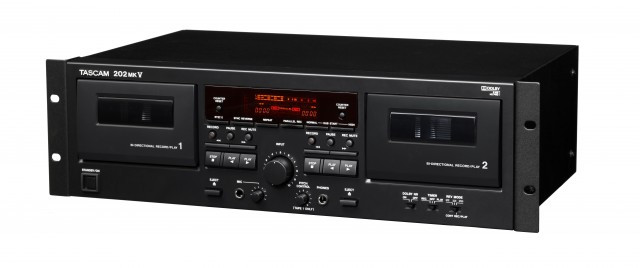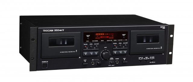 TASCAM's 202mkV dual cassette deck is the only choice for professional studios, houses of worship and other installations needing reliable cassette performance. The two twin-head decks can be used for recording or playback, and Dolby noise reduction is provided (types B and HX Pro). The 202mkV can be used as a normal or high-speed dubber, and even sync reverse dubbing is provided.