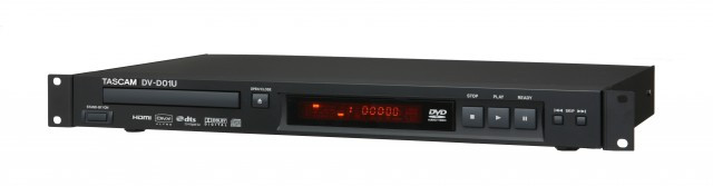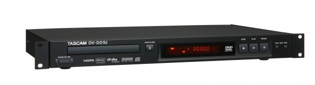 The DV-D01U is a 1U rack-mountable single disc player with a powered loading tray. The DVD player reads DVD Video, DVD Audio (2-channel only), Video CD, CD-DA, MP3, WMA, WAV, JPEG, ASF, MPEG-2/MPEG-1, and DivX. The player is capable of playing back properly finalized DVD +R/+RW discs.