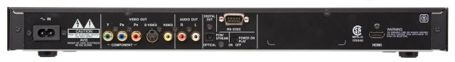 Outputs consist of HDMI audio/video out and Composite, S-Video, and Component video outputs. Rear panel stereo outputs are unbalanced (RCA) and digital outputs are optical. Digital outputs can pass Dolby Digital and DTS surround streams for later decoding.