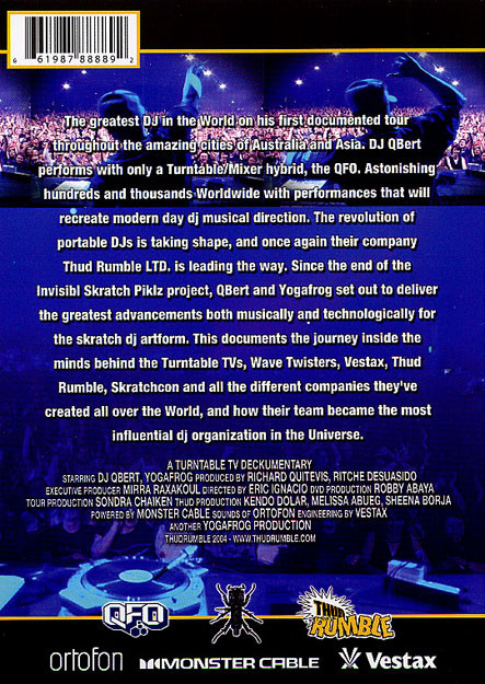 The revolution of portable DJs is taking shape, and once again their company Thud Rumble LTD. is leading the way. Since the end of the Invisibl Skratch Piklz project, QBert and Yogafrog set out to deliver the greatest advancements both musically and technologically for the skratch dj artform. This documents the journey inside the minds behind the Turntable TVs, Wave Twisters, Vestax, Thud Rumble, Skratchcon and all the different companies they've created all over the World, and how their team became the most influential dj organization in the Universe.