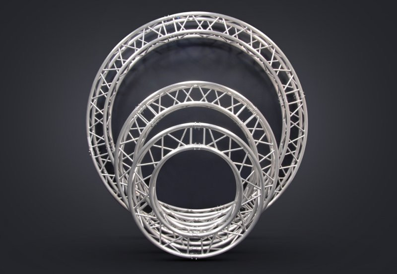 The CT290-415CIR-180 arc truss with an outside diameter of 1.5 meters (4.92 ft) and a 180arc is compatible with many TRUSST accessories and ideal for a multitude of applications and designs when used in combination with TRUSST Sticks, Corners, Base Plates, Accessories and Clamps.