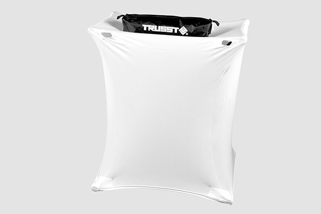 Trusst X Stand Scrim allows you to mask x stands commonly used by the mobile entertainer. Covering the x stand allows it to blend into the background providing a cleaner look while hiding unsightly cables. Additionally, lighting an X Stand Scrim creates a unique geometric colored decor element for creating additional drama and excitement for your guests. Built-in access openings allows installation of second tier support brackets and cable routing. Trusst Tripod Scrims are hand washable avoiding the expense of dry cleaning if they become soiled.