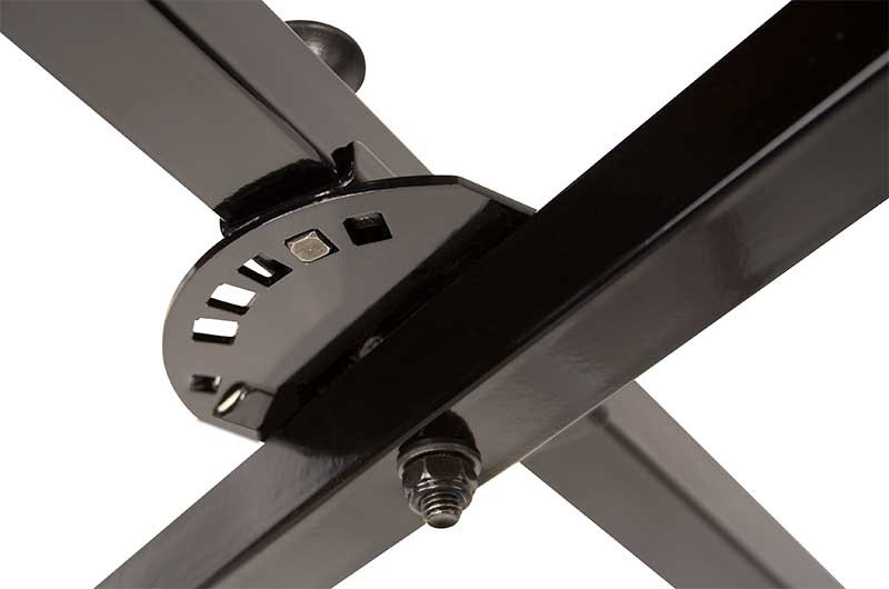 Off-set Bracing System for Maximum Knee RoomMore than offering six height positions that comfortably accommodate a range of sitting and standing positions, the IQ-2000 features an inventive off-set bracing system. This design feature gives keyboardists more knee room than any other double-braced stand, ensuring that the stand is out of the way and that only the keyboard is in focus during performances.