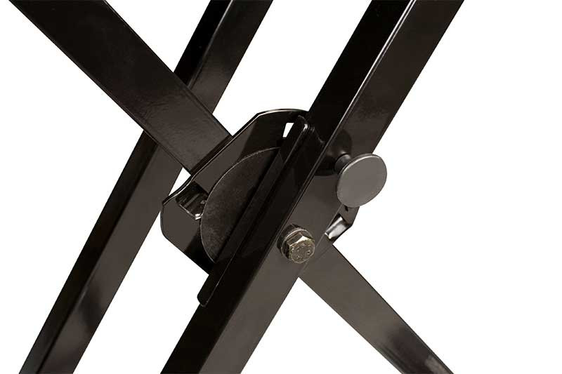 Patented Memory Lock SystemEquipped with the IQ Series' patented Memory Lock System, the IQ-2000 offers a set-it-once solution that saves gigging and on-the-go keyboardists time and energy. After initially choosing a preferred height position, the Memory Lock opens the stand to the desired height every time. Keyboardists need only to lift and place their instruments once.