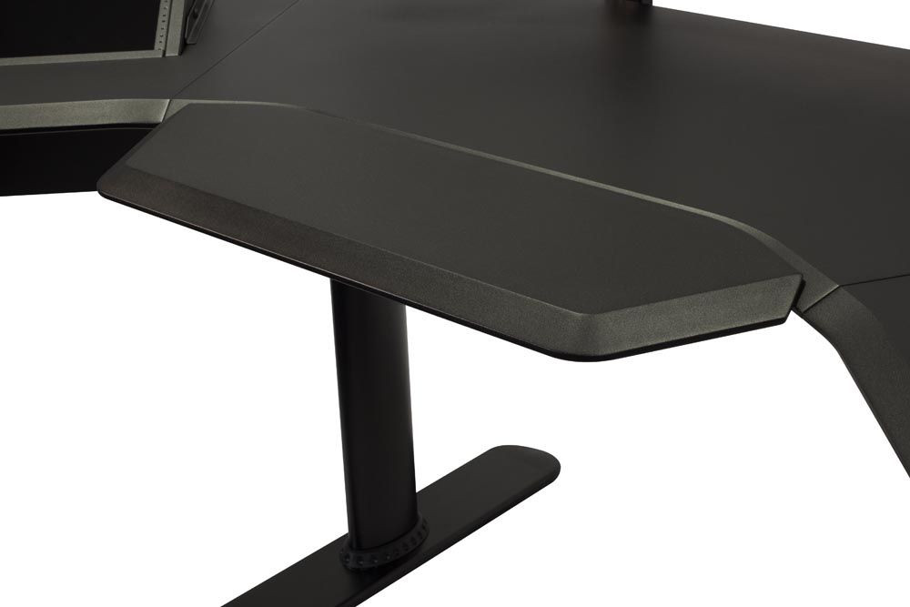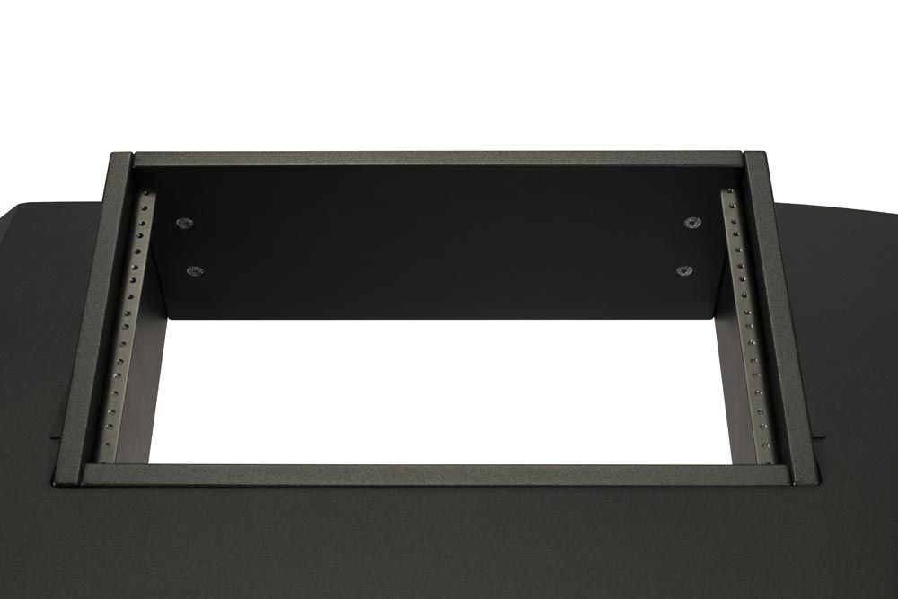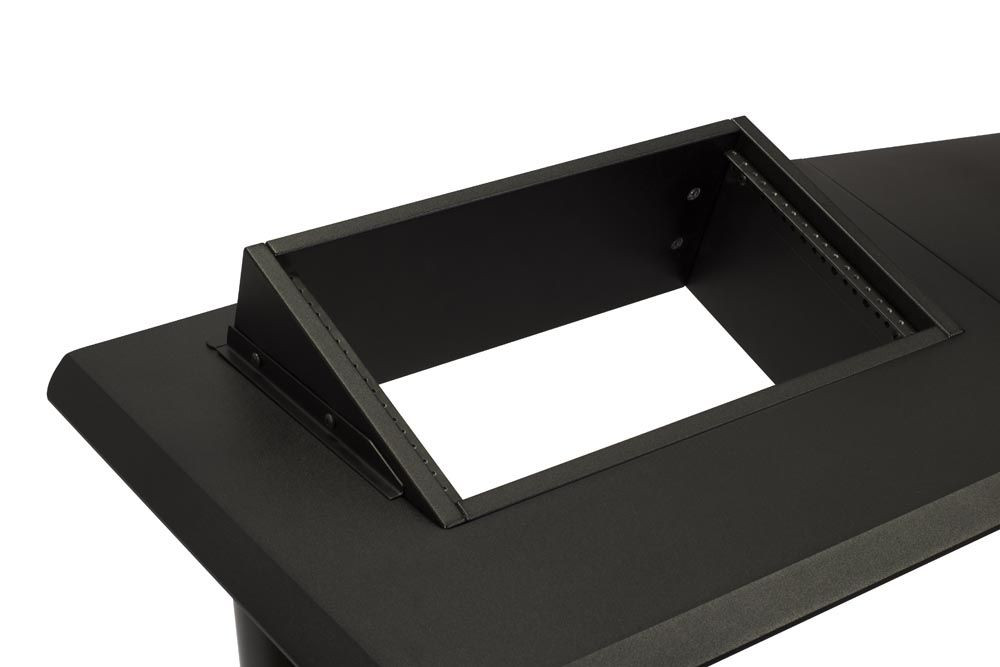Nucleus Series - Studio Desk - Base model, 2 x 24" extensions featuring sunken 6 space racks, 2nd Tier, 4 space rack, Keyboard Tray. The Nucleus 5 from Ultimate Support has been designed with mastering engineers and post production professionals in mind. Two sunken 6 space racks and the 4 space rack positioned below the second tier give you optimal access to all of your equipment for sweet spot dependent tasks. Combined with the decoupling built into all Nucleus Modular desks and the outstanding quality of materials, the Nucleus 5 continues the line's of bringing top shelf features to studio furniture at the best possible price point.