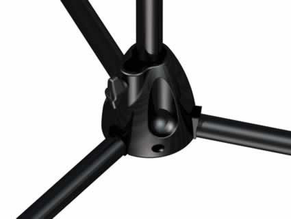 Die-cast Tripod BaseThe durable and strong, black, chrome-plated die-cast tripod base on the Pro series microphone stands is up to 30 times stronger than the competition's base. And the super strong tripod legs securely snap into place for easy storage and quick setup and take down.