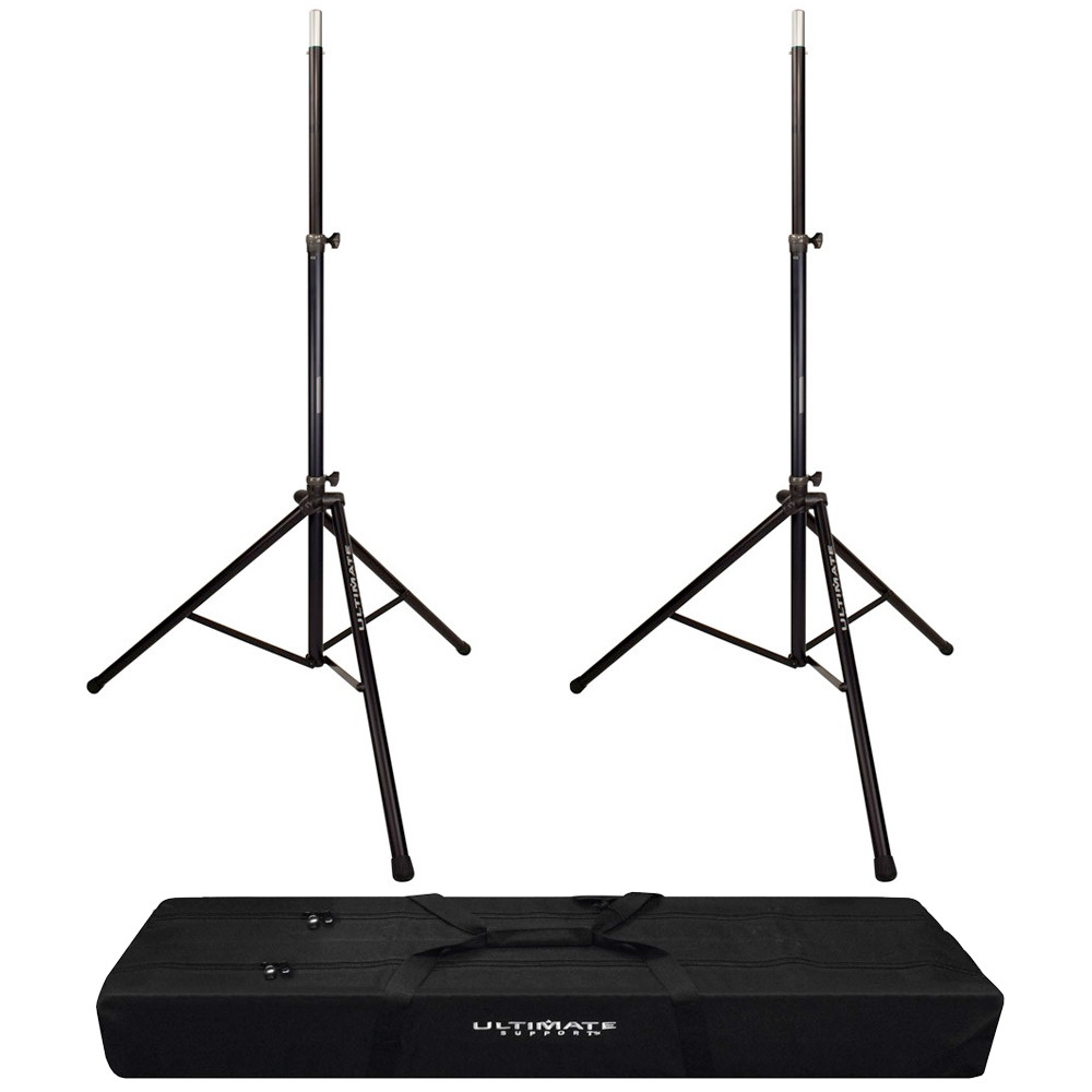 This bundle includes (2) Ultimate Support TS-88B tall speaker stands and (1) Ultimate Support BAG-99D high quality padded dual stand bag