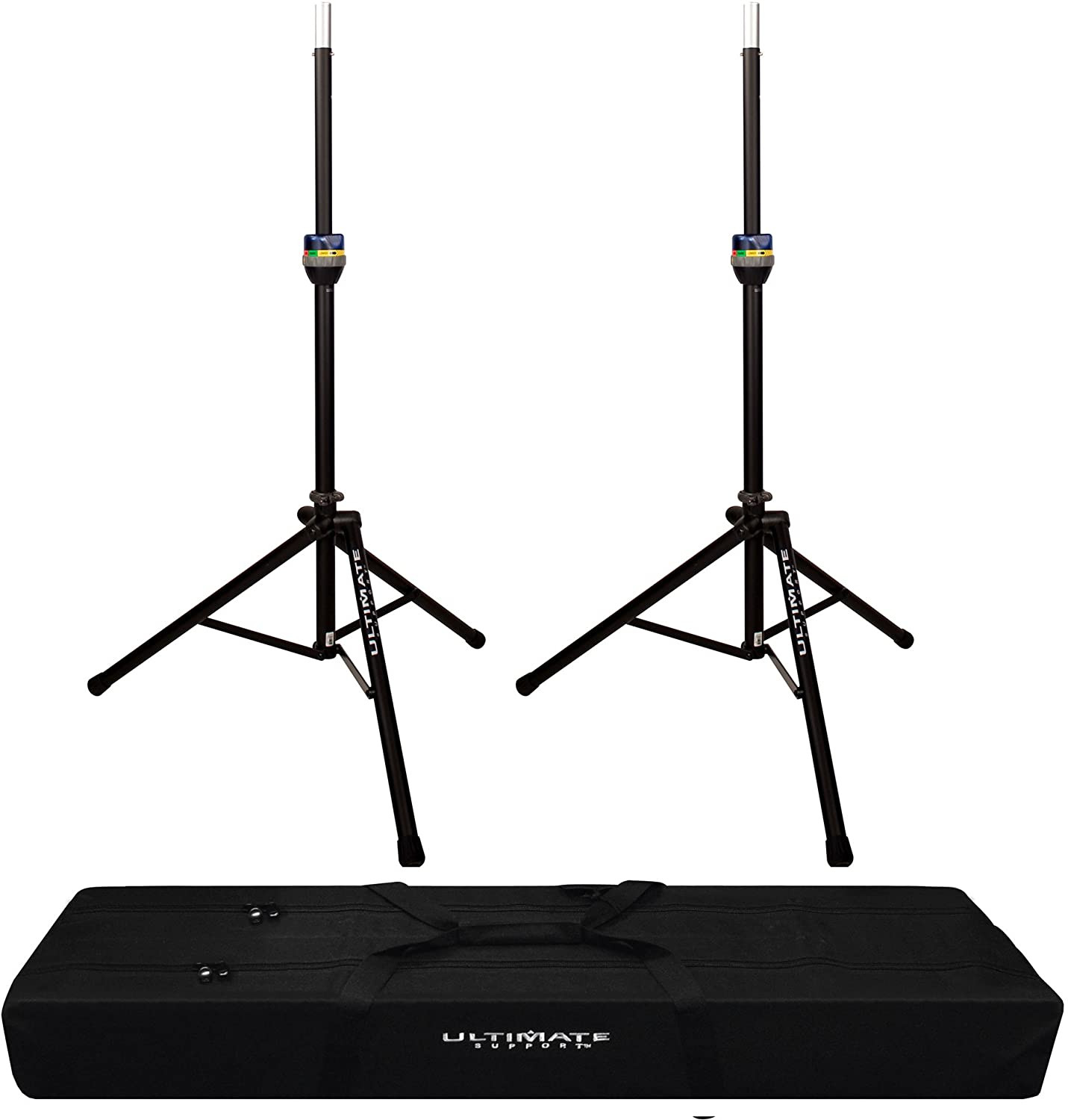 This bundle includes (2) Ultimate Support TS-90B TeleLock speaker stands and (1) Ultimate Support BAG-90D high quality padded dual stand bag