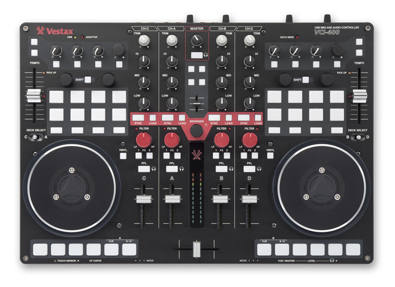 EXCELLENT SOFTWARE COMPATIBILITY The VCI-400 is bundled with Virutal DJ LE 4 Decks together with overlays of each software for immediate DJ experience out of the box. It is also Serato DJ ready. A blank overlay for DJs who seek to customize MIDI assigns and create their own layout is also included. MIDI maps for a variety of software including TRAKTOR PRO 2, MixVibes, TORQ 2, Deckadance are available from the VCI-400 download page and the Vestax support page.