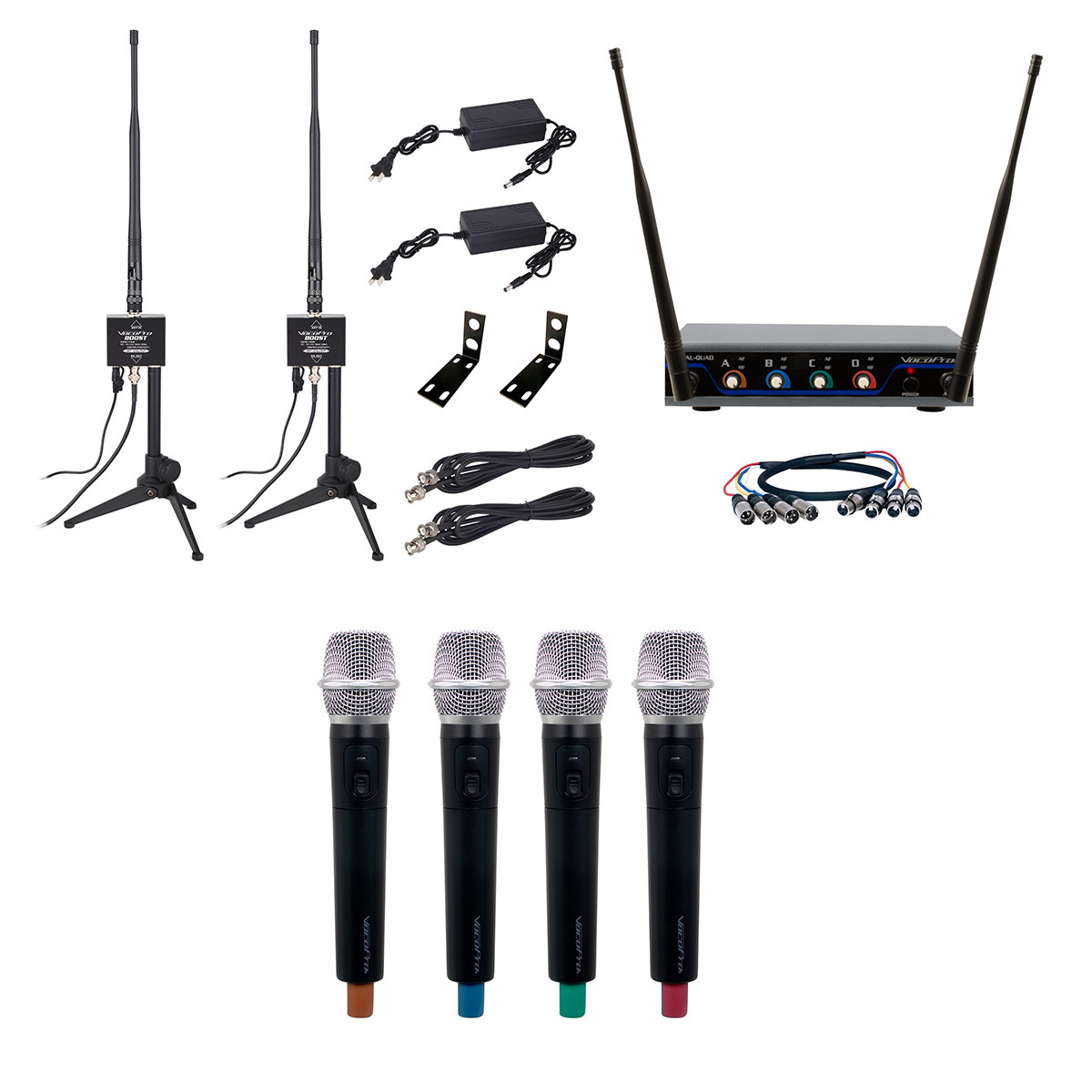 The Vocopro Boost-Acapella-4 is a 600t. long-range digital wireless microphone package with handheld transmitters.