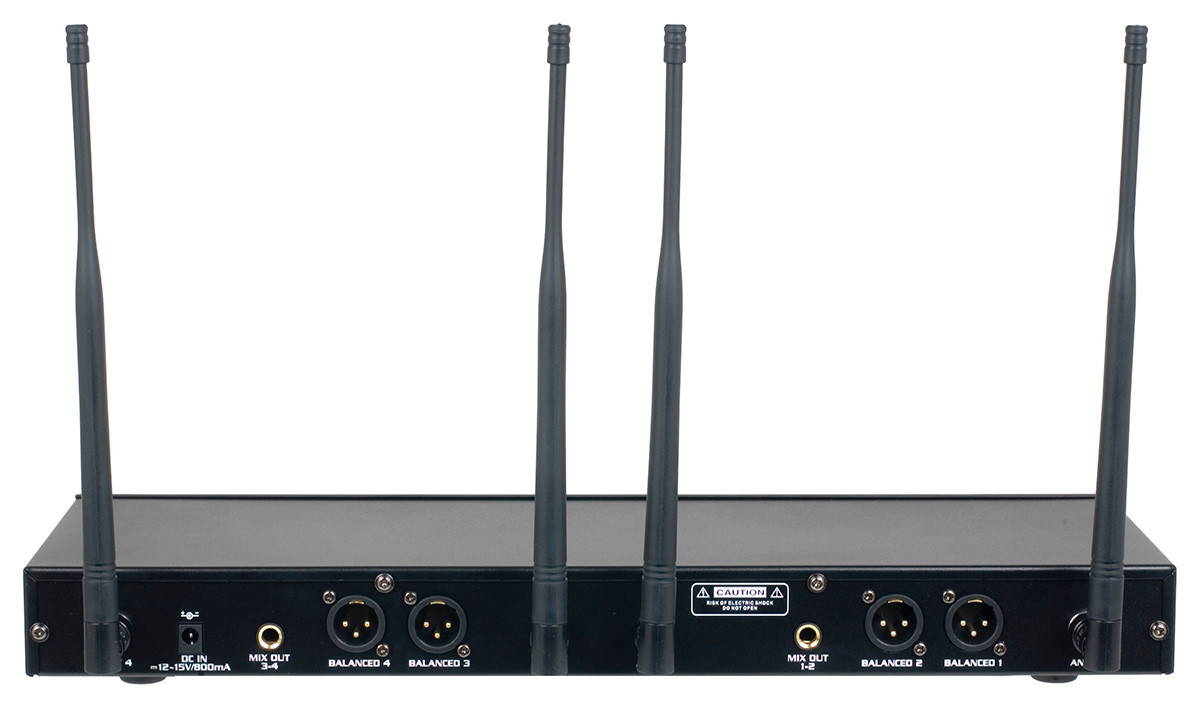 FEATURES:• Each receiver comes packaged with a Wireless Handheld Microphone as well as a body pack transmitter with headset microphone and instrument cable for added versatility