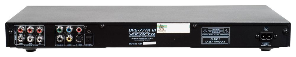 VocoPro DVG-777KIII Features• Multi-format disc player reads DVD, CD, CD+G, Mp3+G, Mp3, and VCD