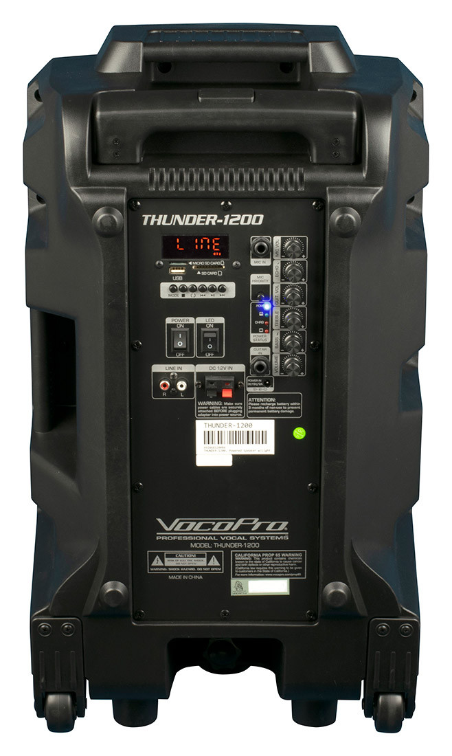 A total etnertainment solution. The Vocopro Karaoke Thunder powered speaker series combines a powered speaker with a professional DJ light to bring vibrant light shows effortlessly to any small to medium sized venue. Feel the music when the 12 inch woofer pumps out 600 watts of peak power.* The built-in LED derby flashes out professional light shows that dance to the sound of your music.