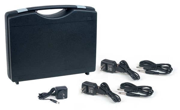 Instead of plugging mic cables to the bottom of your mics, you connect the plug-on transmitters, and the mic signals are sent wirelessly to the included receiver. The system operates in the 2.4GHz range, allowing for digital full-spectrum sound.
