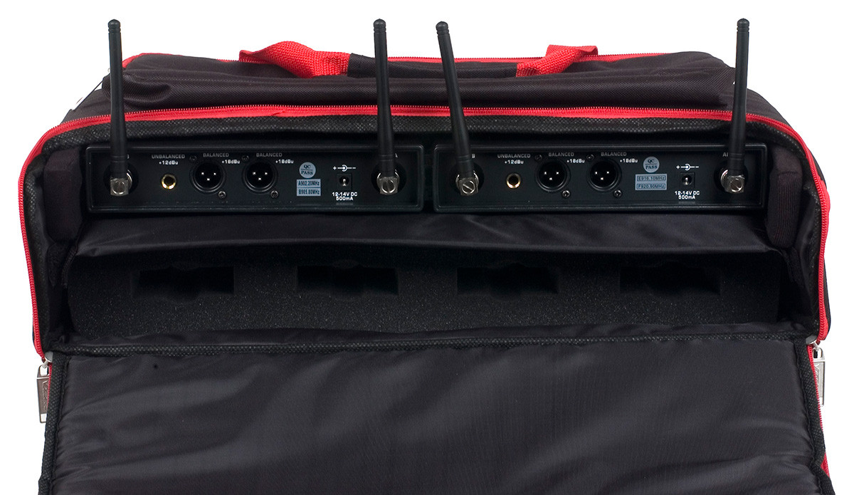 And for the first time in the wireless microphone history, VocoPro is shipping this four channel wireless headset/lapel microphone system pre-installed in a custom gig bag! Everything needed to set up is right there in the bag: the customer needs only to connect the included XLR cable to their equipment and they're ready to rock the house!
