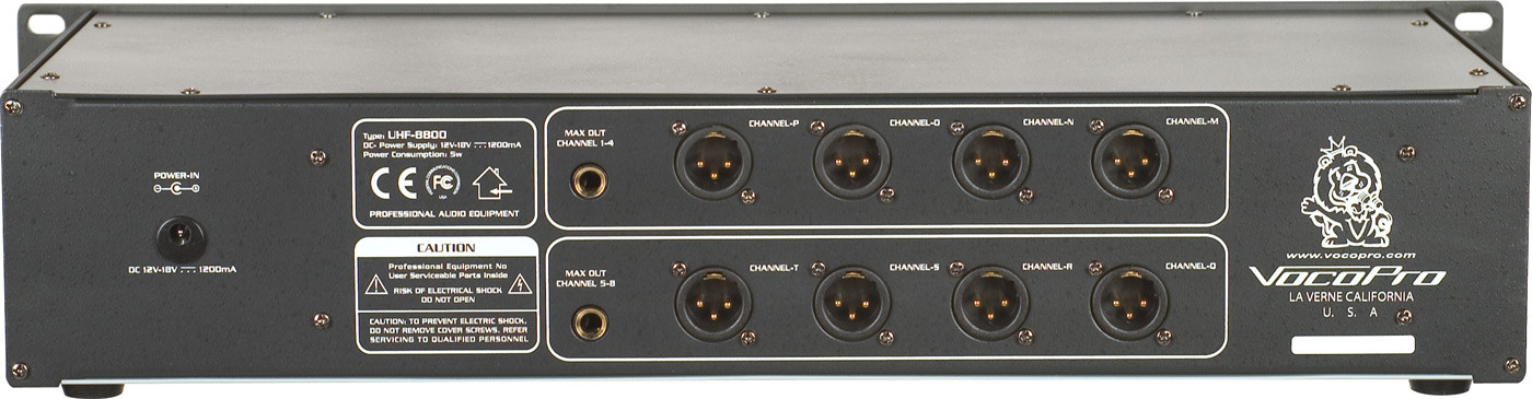 The included microphone stands clean up the performance area while providing the professional look that'll make you stand out. The XLR-Quad cables enable easy set up while providing the highest quality sound from the 8 dedicated XLR outputs located on the back of the rugged metal-chassis receiver. The entire microphone system is secured into a professional carrying bag to for easy transport and quick setup time. The UHF-8800-XL package is ready to tackle the largest performance groups while providing the clear sound VocoPro is known for.