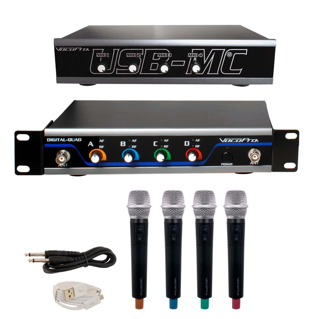 The USB-Acapella packages come with handheld wireless microphones, and are available with 4, 8, 12, or 16 handheld mics. Step up the game and showcase to the world with Vocopro's USB-MC and Digital-Quad packages.