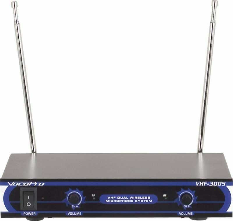 For those who have been looking for a wireless microphone system that's both reliable and super affordable, VocoPro is proud to introduce the VHF-3005. Superior sounding vocals, a clear signal and wireless freedom are what make the VHF-3005 an easy choice for singers and entertainers alike.