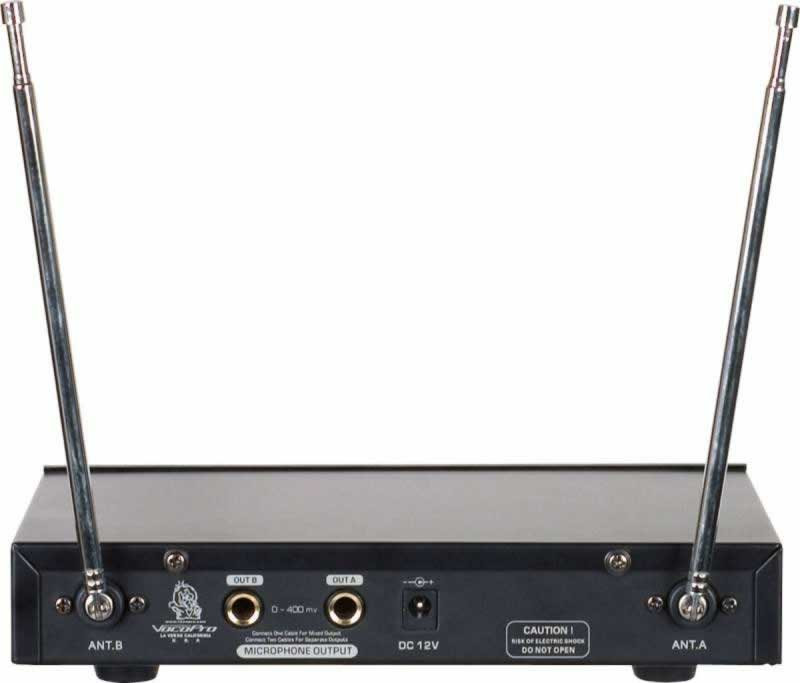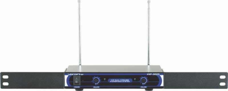 This dual channel VHF wireless microphone system is the perfect solution for home karaoke, smaller gigs, public speaking and more. Both channels include individual volume controls for precise vocal balancing and individual 1/4" outputs for use with a receiver or mixer, allowing you pro-quality control over your vocal mix. The VHF-3005 is great for home entertainment, yet it has what it takes to withstand the challenges of public use. It is designed to better resist outside RF interference, so you can sing without any unwanted distractions. Set yourself free with a wireless system that's built to last and that will keep you sounding like great for years to come. Head to your local VocoPro dealer and pickup a VHF-3005 today.