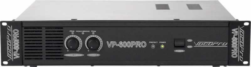The 100dB signal to noise ratio on the amplifier insures the clearest audio signal. Both the 1/4" and XLR input jacks offer total versatility in setting up. System failure is the worst nightmare for all the commercial operators, this is why the VP-600 PRO amplifier has a built-in five way protection system to insure proper operation at all times. With features like the 19" rack mountability and the variable speed forced air fan, the VP-600 PRO can be protected in road cases or amp racks without overheating. The VP-600 PRO amplifier outputs 600 watts of power RMS and takes only two rack spaces!